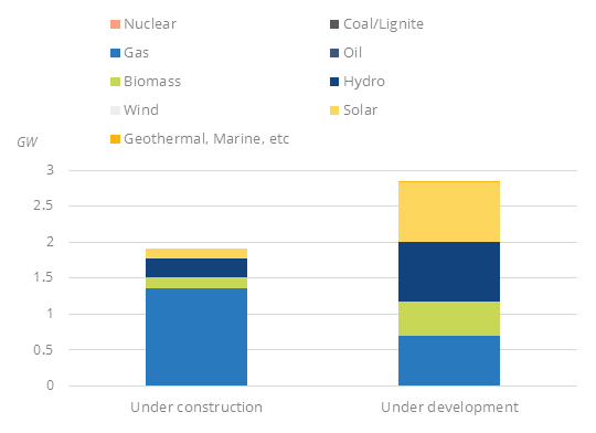 More than 2.1 GW of capacity is currently under construction, including 1.3 GW of gas, and 3 GW are under development, including 1.4 GW of gas and 0.9 GW of solar.