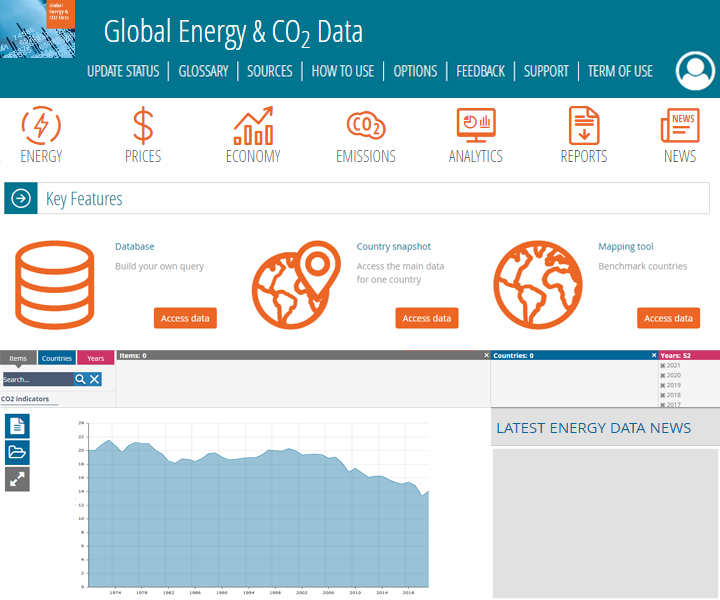 Why bother struggling with multiple data sources? Global Energy & CO2 Data brings you the most comprehensive and up-to-date energy database, providing data and trends for all energies by sector as well as emissions for 186 countries. This database leverages the most reputable national and international information sources.