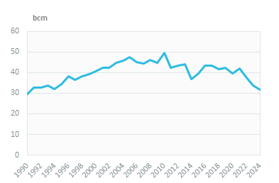 Imports of crude oil declined by 2% in 2024 to 45 Mt, after an 11%/year increase over 2021-2023, while the production of petroleum products remained stable at 47 Mt, after growing by 14%/year over 2022-2023. As a consequence, imports of oil products rose by 1% in 2024 to 38 Mt, after falling by 9%/year in 2022-2023.