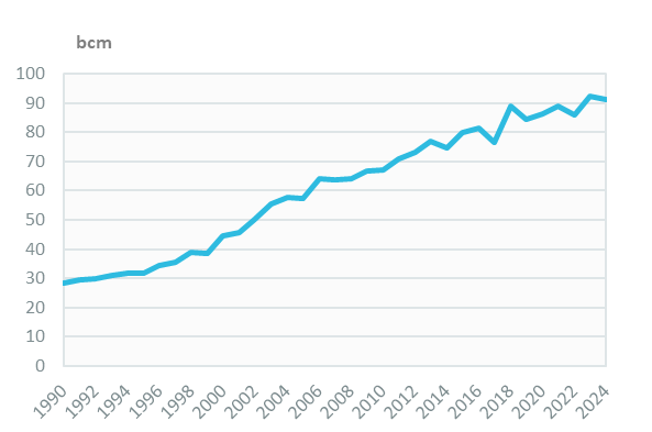 Gas demand has been increasing by 2%/year on average since 2010 to 91 bcm. It increased more rapidly between 2000 and 2010 (around 4%/year) with the commissioning of numerous gas power plants.