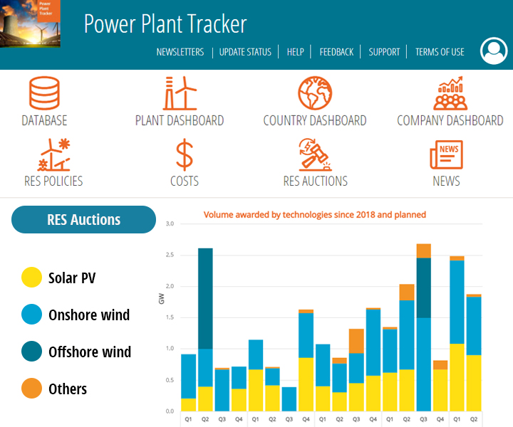 Enerdata’s RES auctions monitor is a very detailed, regularly updated database showcasing past and current auctions on a global level.